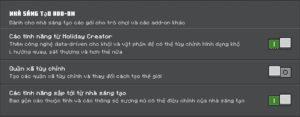 Lưu Ý: Các bạn khi tạo thế giới phải bật như vậy thì Addon mới sử dụng được nha !!!